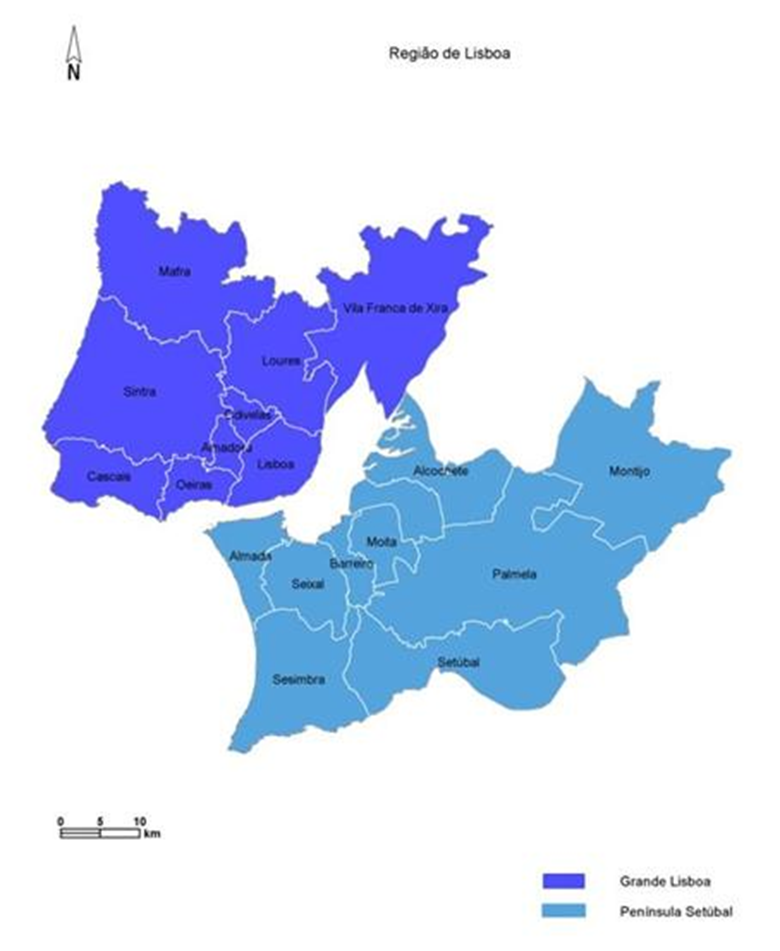 Para conhecer o território abrangido, incluindo os concelhos que integram cada NUTS III, consulte o mapa da Região de Lisboa